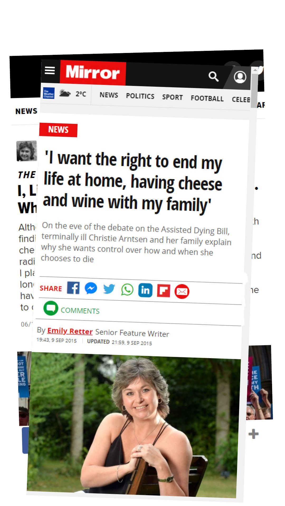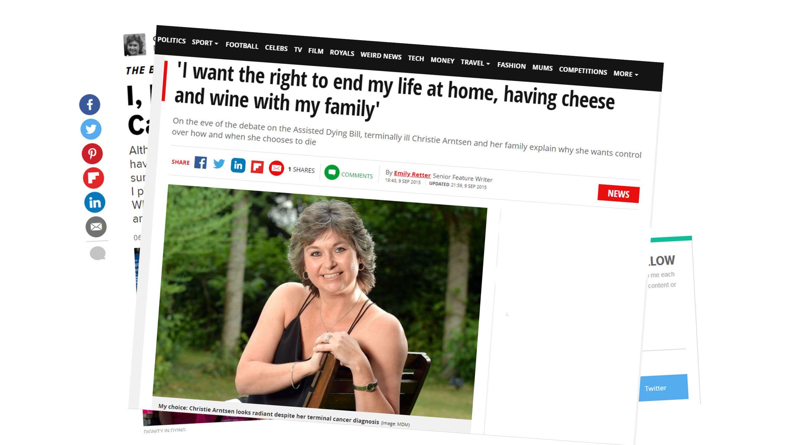 I have spoken out on national TV and radio because I feel so strongly that I should have a say over my own death.