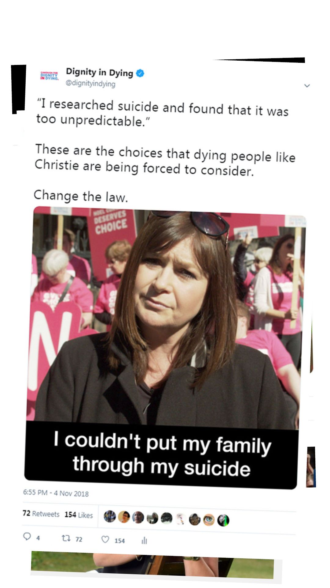 But this would mean having to end my life earlier to make sure I was well enough to plan and make the journey alone, so as not to implicate my loved ones.